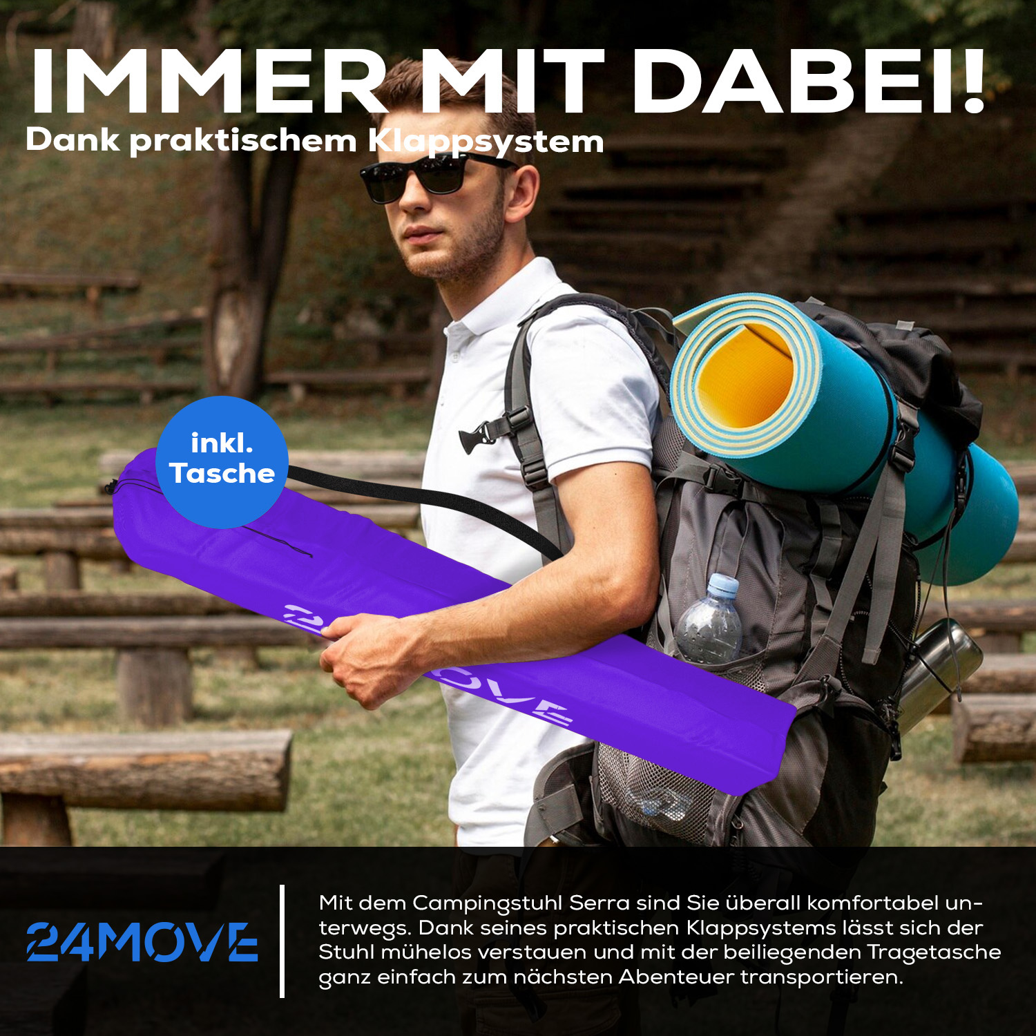 24MOVE® Campingstuhl faltbar,Anglerstuhl,Liegestuhl mit Getränkehalter, lila