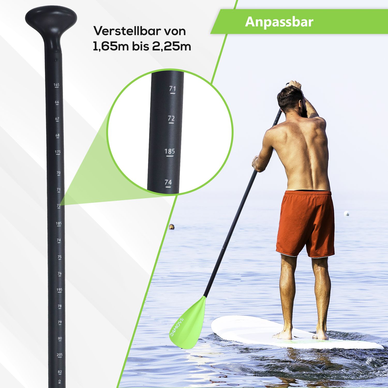 Mit einer Gesamtlänge von 2,30 m ist das Paddel perfekt für breitere SUP-Boards geeignet. Sie werden die Geschwindigkeit und Stabilität spüren, während Sie über das Wasser gleiten.
