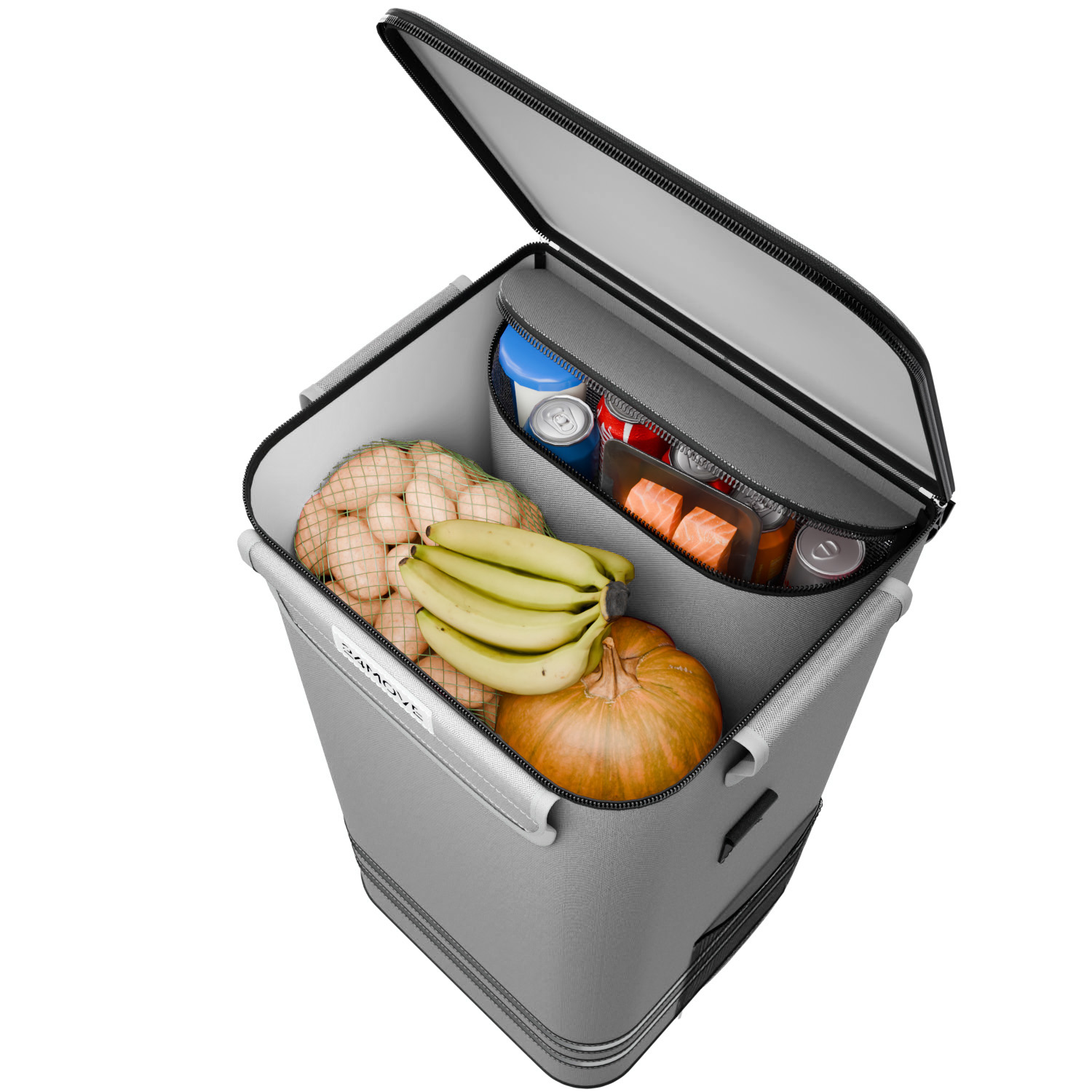 Der Griff sorgt für eine angenehme Handhabung, während das geräumige Hauptfach mit mehreren Litern Fassungsvermögen genug Platz für alle Einkäufe bietet. Das hochwertige Gestell aus Aluminium ist robust, aber dennoch leicht, sodass Sie den Trolley mühelos ziehen oder schieben können.