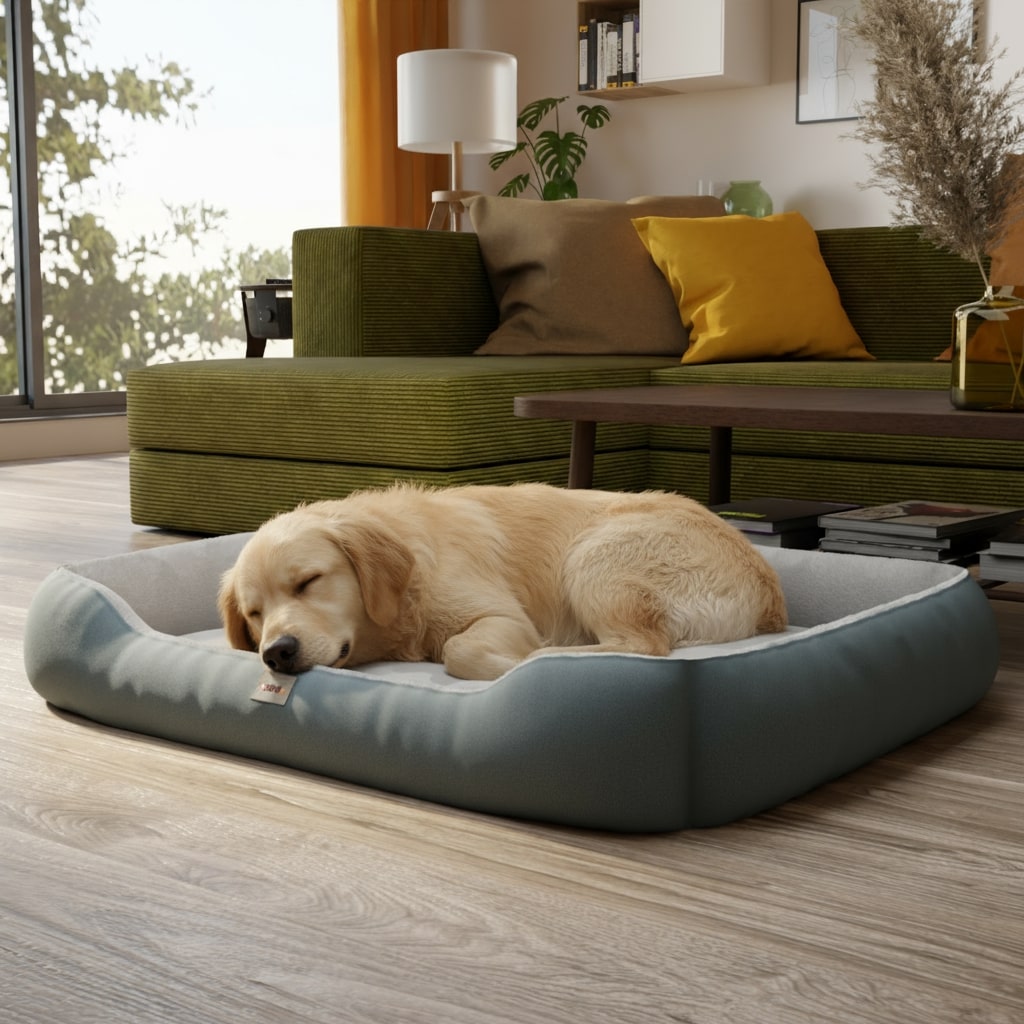 Für zusätzliche Sicherheit sorgt die rutschfeste Unterseite. Besonders auf glatten Böden wie Laminat, Fliesen oder Parkett zeigt sich dieser Vorteil. Das Bett bleibt stabil an Ort und Stelle, auch wenn Ihr Hund voller Energie hinein- oder hinausspringt. Diese Standfestigkeit schützt vor Verrutschen, gibt Ihrem Hund Sicherheit und erspart dir das ständige Ausrichten des Bettes. Gerade aktive Hunde, die sich gerne viel bewegen, profitieren von diesem Detail, aber auch ruhige Schläfer genießen die verlässliche Stabilität. Das Hundebett wird so zu einem festen Ruhepol im zuhause.