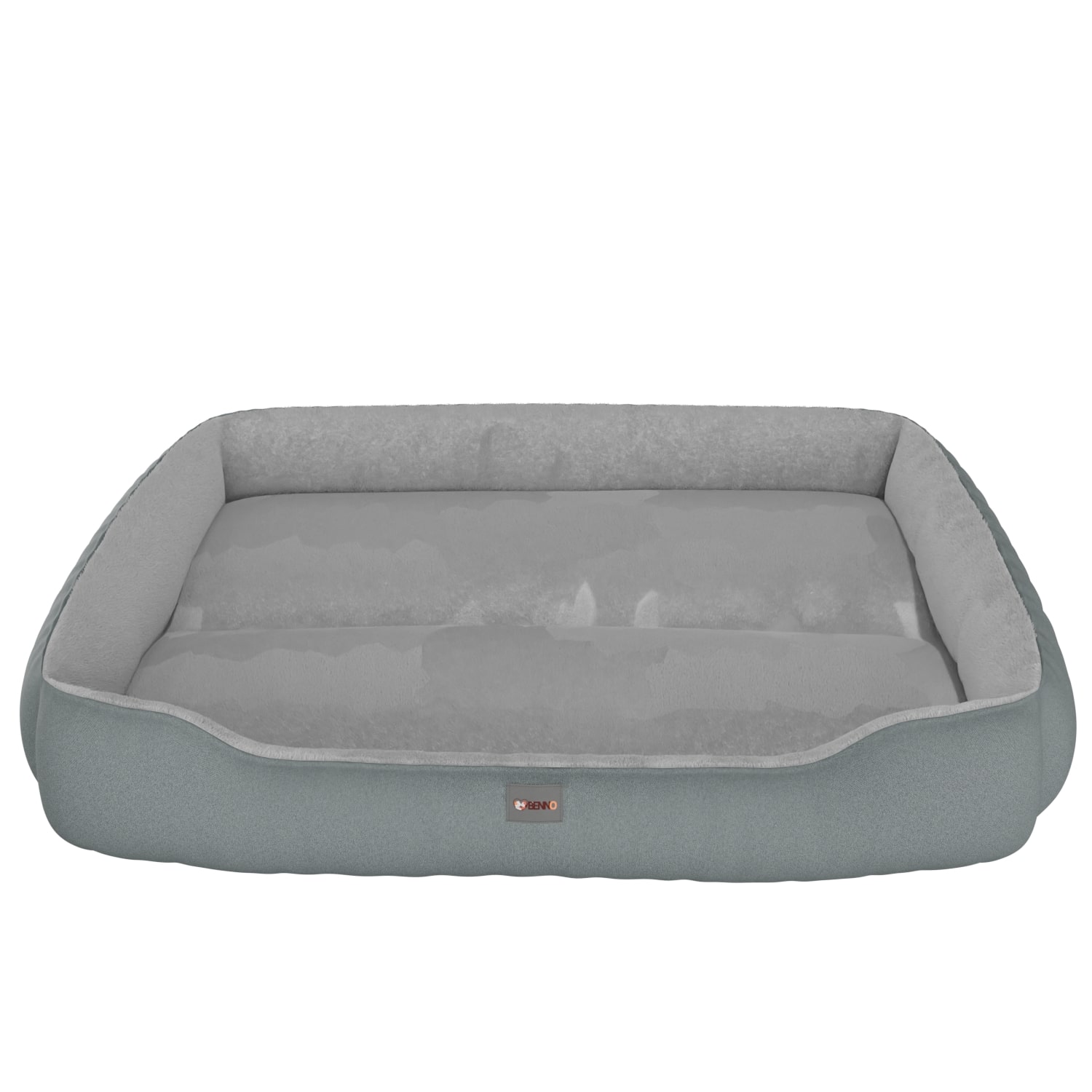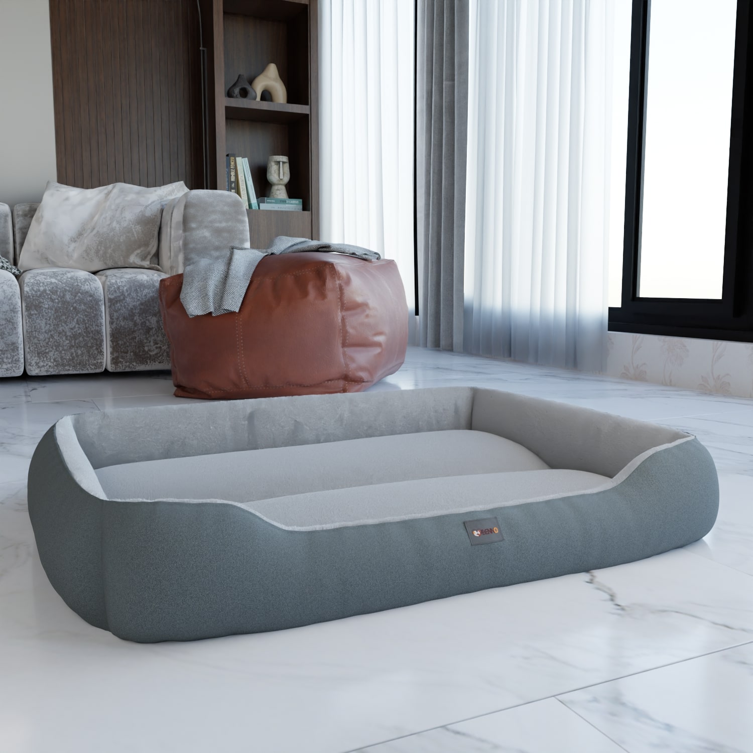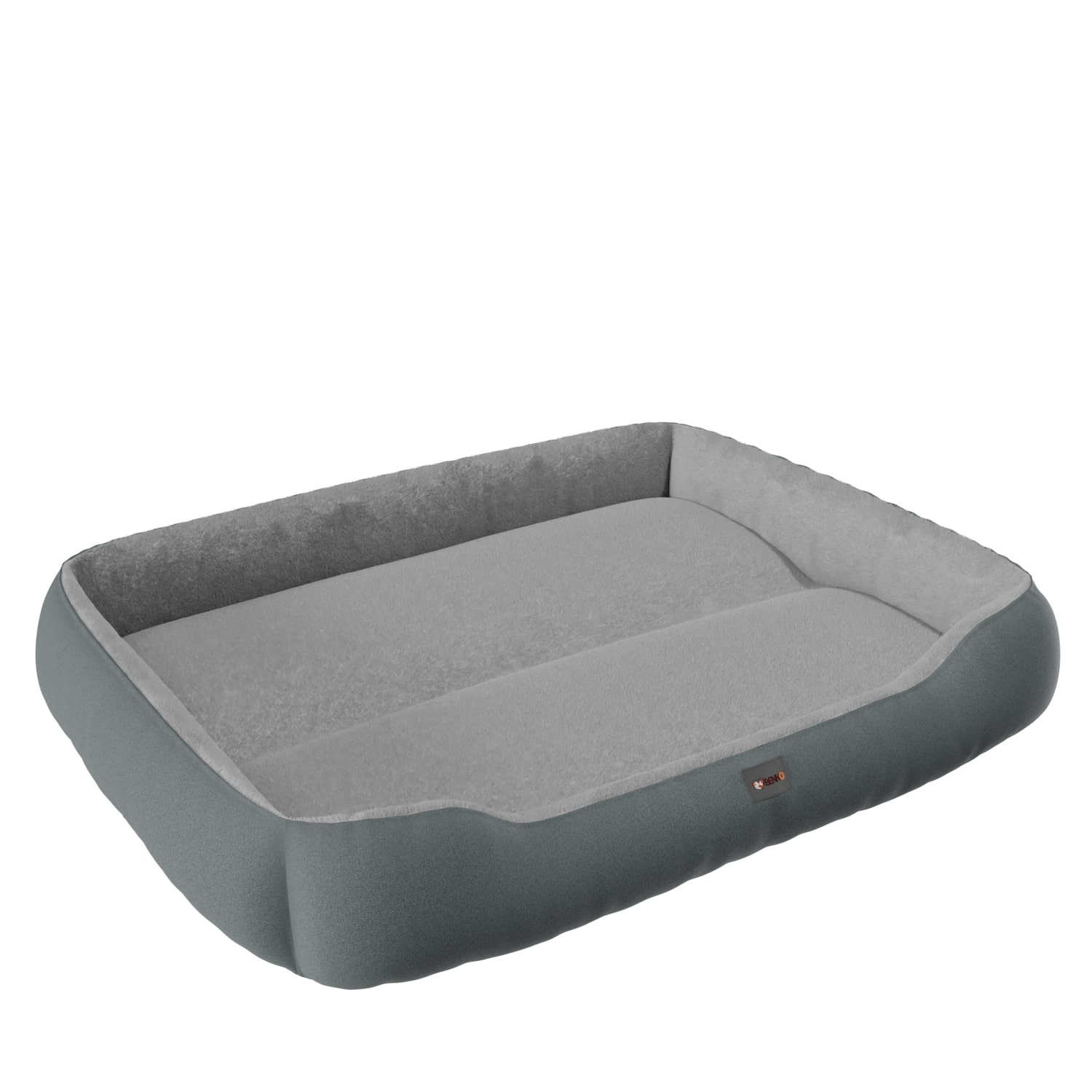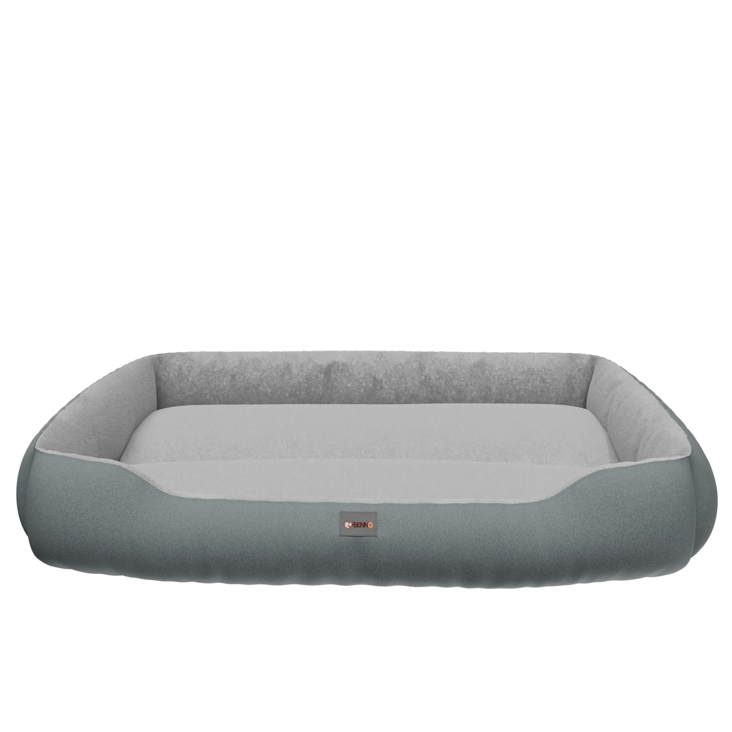 Das BENNO® Hundebett SAMMY mit den Maßen 95x75x18 cm ist ein großzügig gestalteter Rückzugsort, der Ihrem Vierbeiner Komfort, Sicherheit und Wohlbefinden bietet. Mit seiner quadratischen Form entsteht eine weitläufige Liegefläche, die zum Ausstrecken, Kuscheln und Schlafen einlädt. Hunde genießen hier nicht nur Ruhephasen, sondern auch die Möglichkeit, bequem verschiedene Liegepositionen einzunehmen. Die weiche Polsterung sorgt für ein behagliches Liegegefühl, während die leicht erhöhten Ränder Schutz vermitteln und zusätzlich als Kopfablage dienen. Ob nach einem Spaziergang, beim Spielen oder für die Nachtruhe – das Bett bietet stets einen verlässlichen Platz. Dank seines schlichten, modernen Designs fügt es sich harmonisch in unterschiedliche Wohn- und Schlafbereiche ein und wird schnell zu einem festen Bestandteil des Alltags.