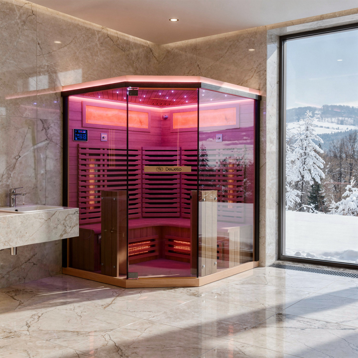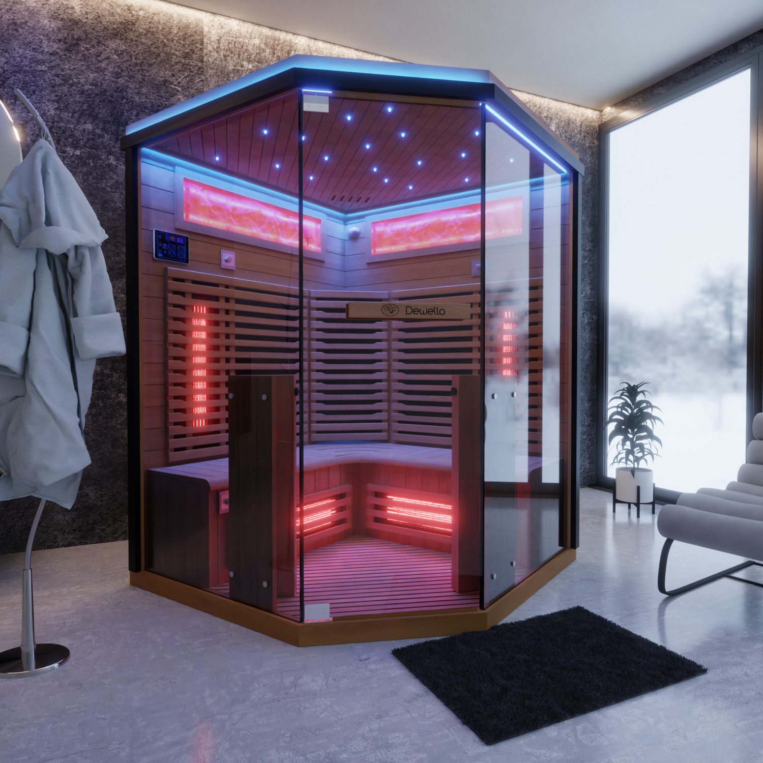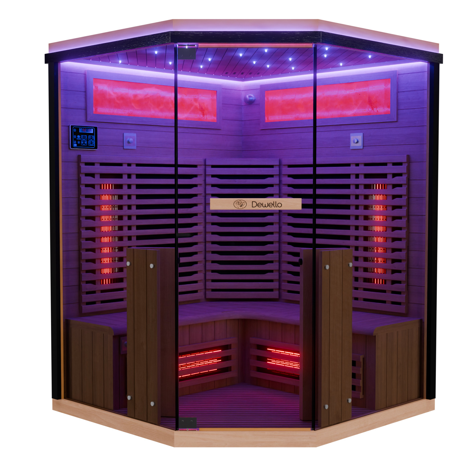 Dewello Infrarotkabine KENORA 140cm x 140cm mit Salzsteinoptik