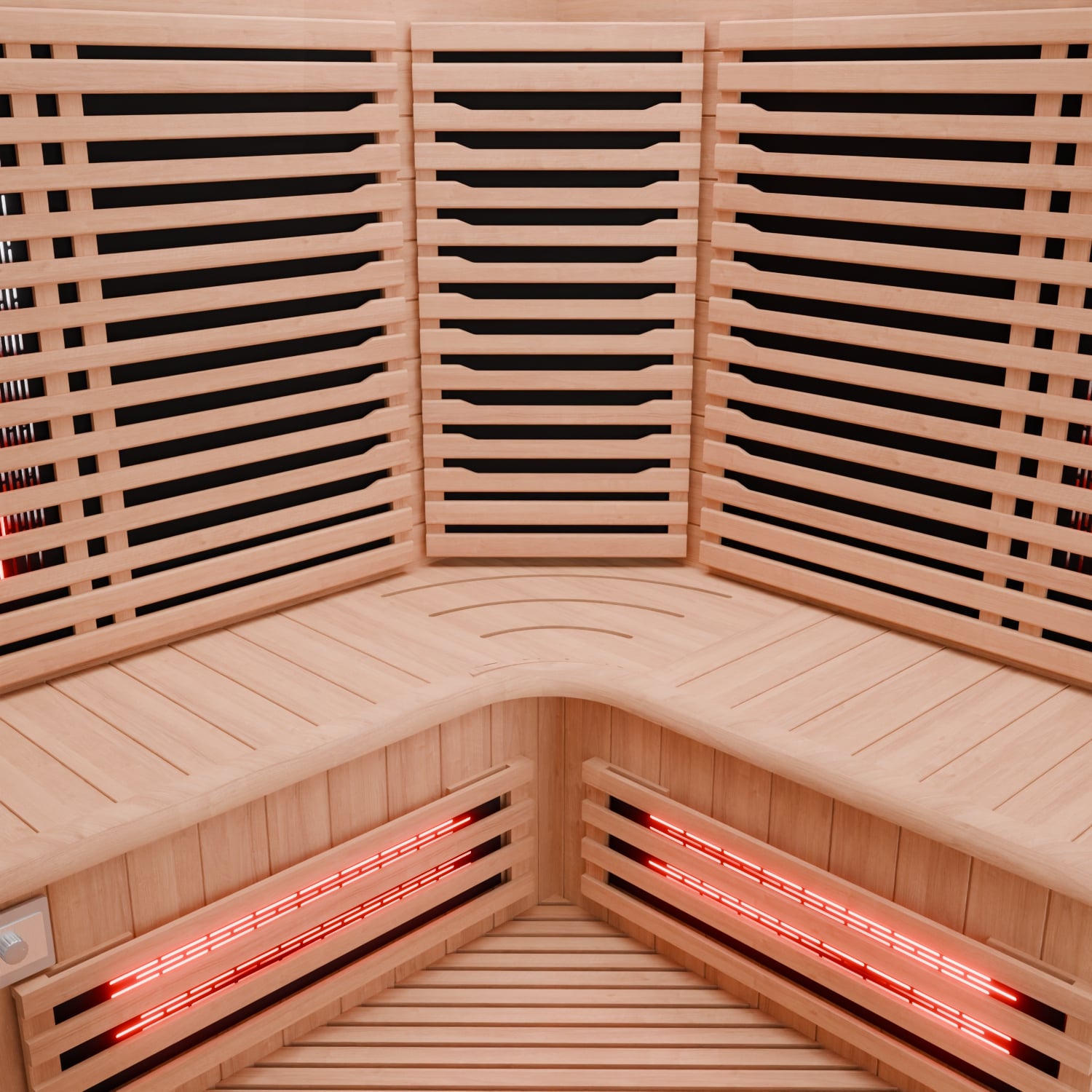 Die Kabine ist mit einer intuitiven Steuerungseinheit ausgestattet, mit der sich Temperatur und Dauer der Sitzung einfach regulieren lassen. So kann die Kabine individuell auf die eigenen Bedürfnisse eingestellt werden. Das Temperaturspektrum reicht von 30 °C bis 65 °C, sodass eine flexible Nutzung je nach persönlichem Empfinden möglich ist.