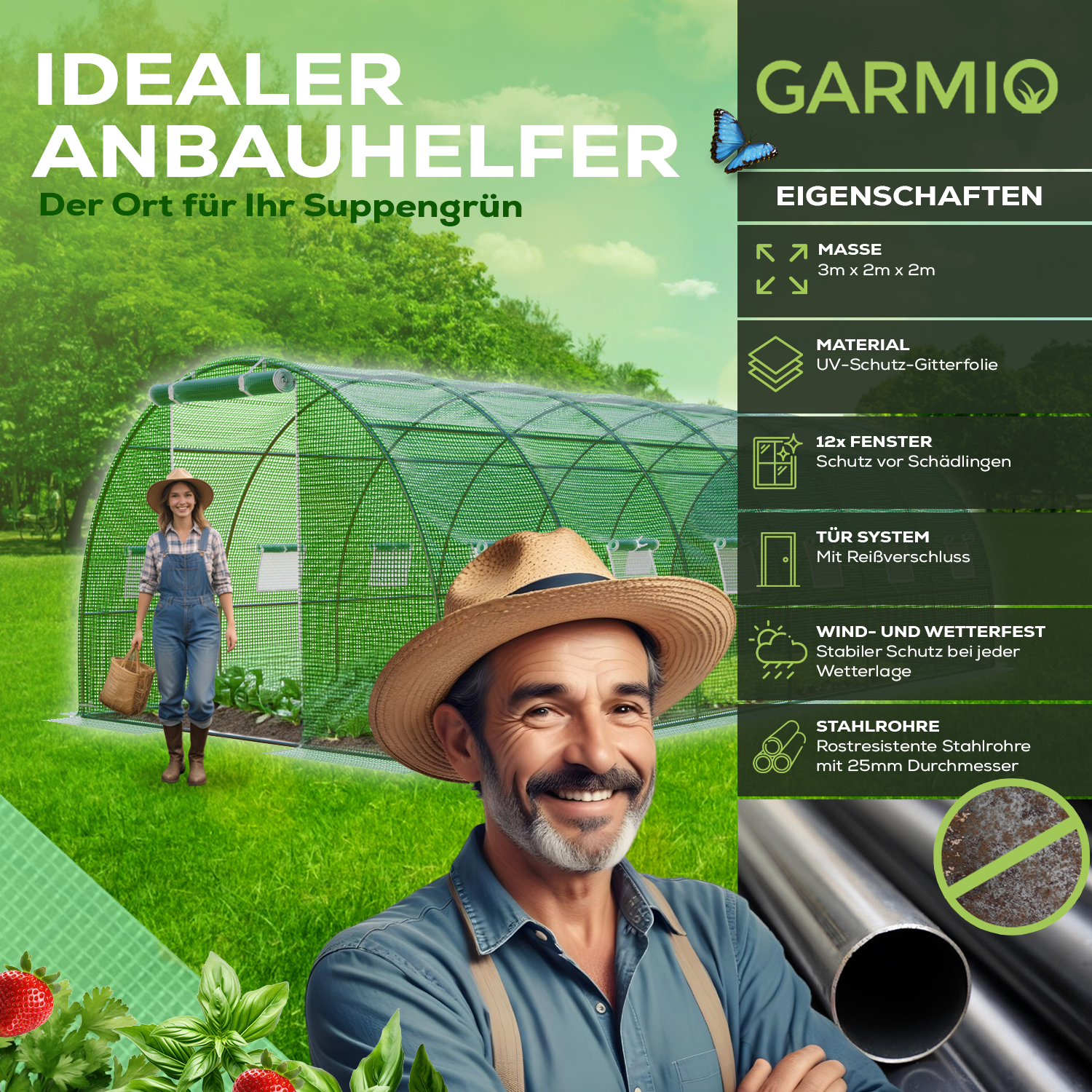 GARMIO® Foliengewächshaus CARINI 6x3x2 m