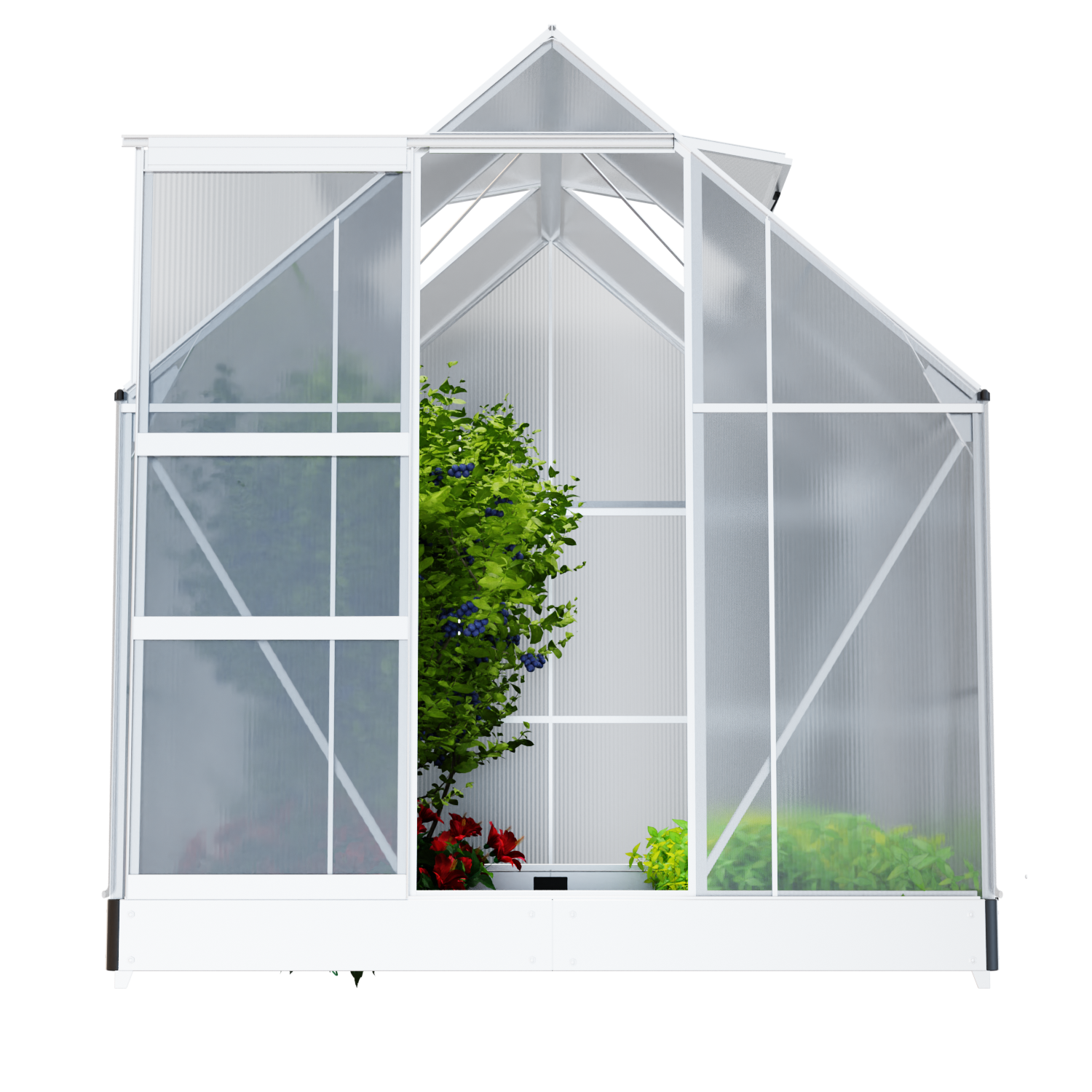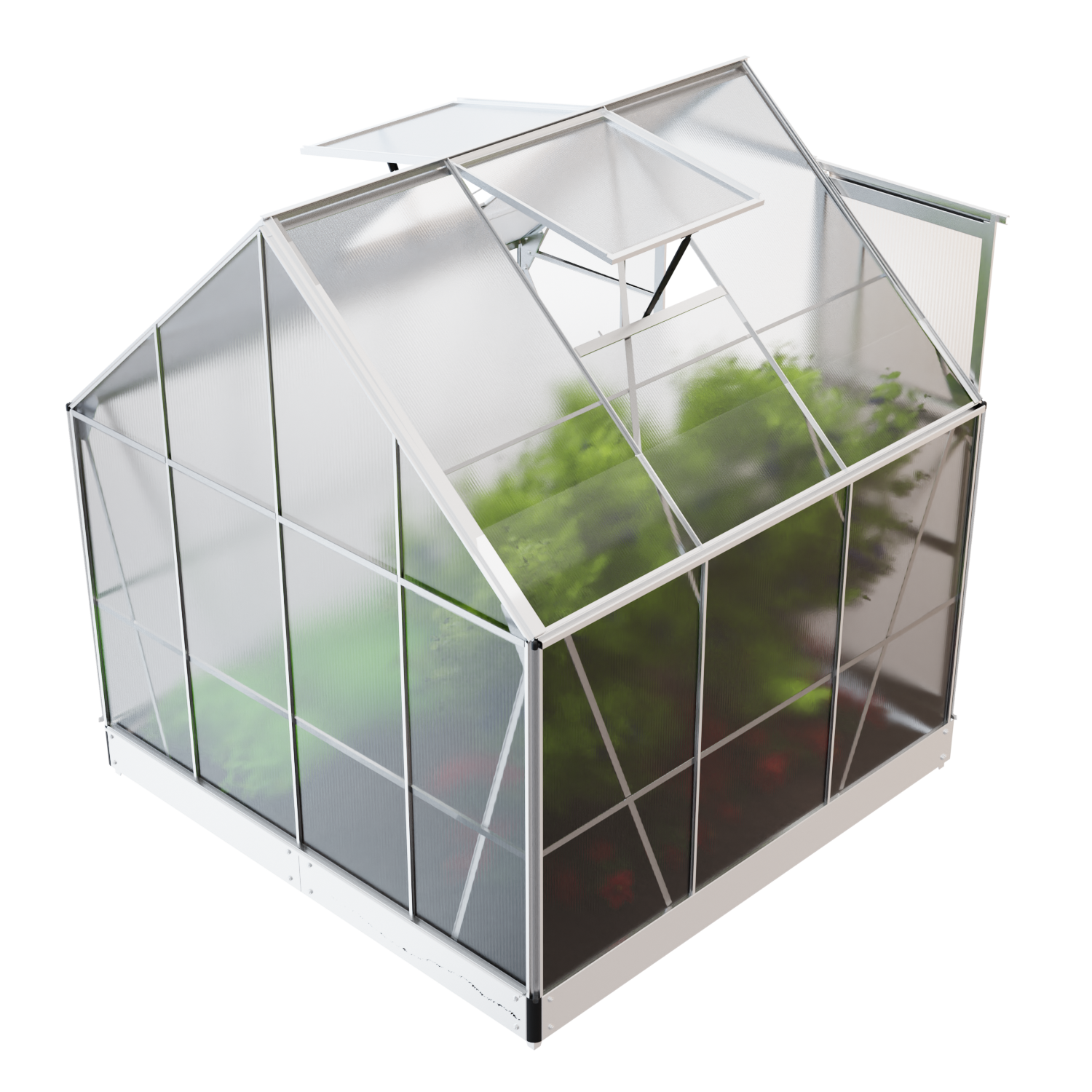 Das hochwertige und stabile Gewächshaus mit Dachfenster, bestehend aus Aluminiumprofilen und wärmedämmenden Hohlkammerstegplatten. Ideal zum Pflanzen Ihrer Wunschgewächse zu jeder Jahreszeit.