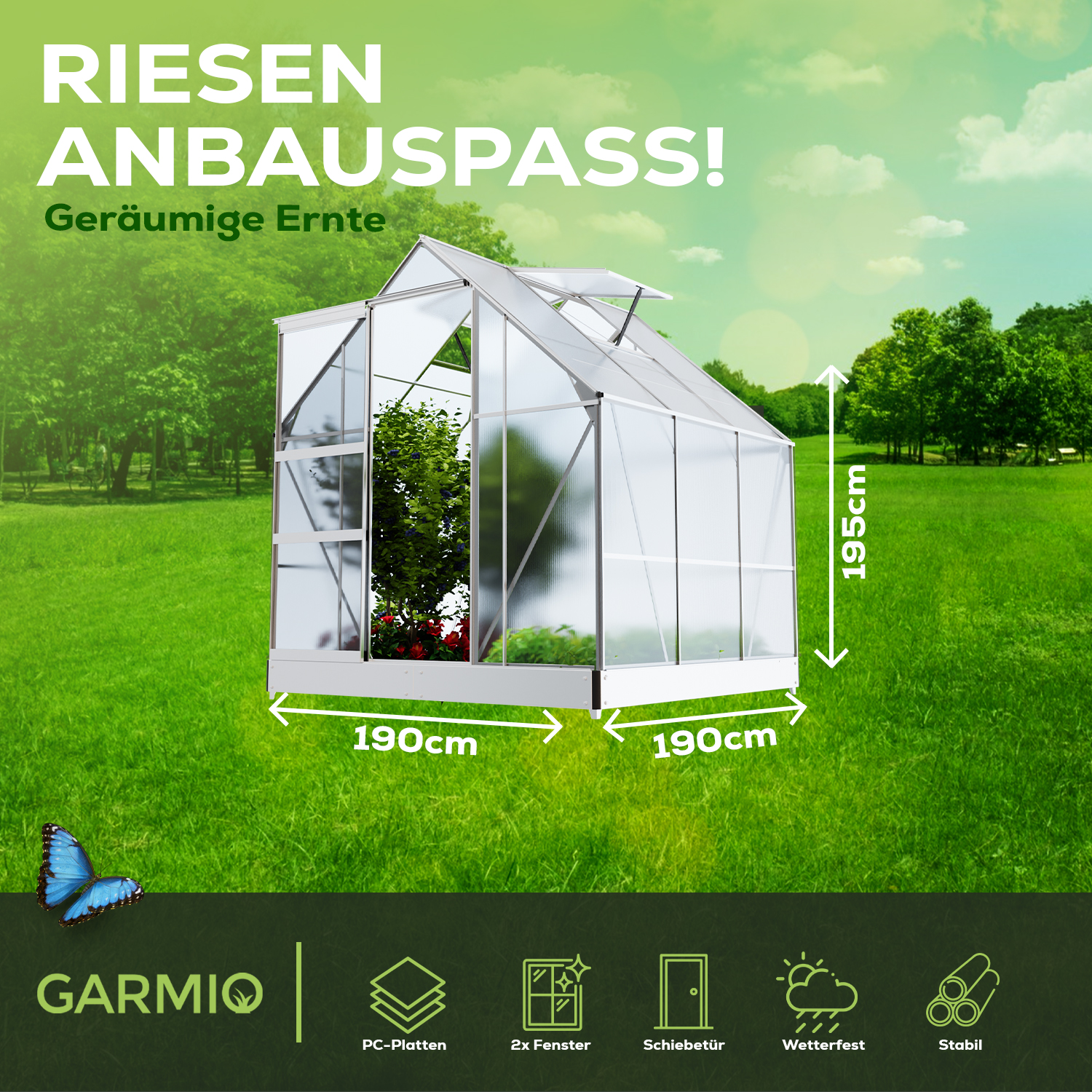 - ✔ Gesamtmaß: 190x190x195cm