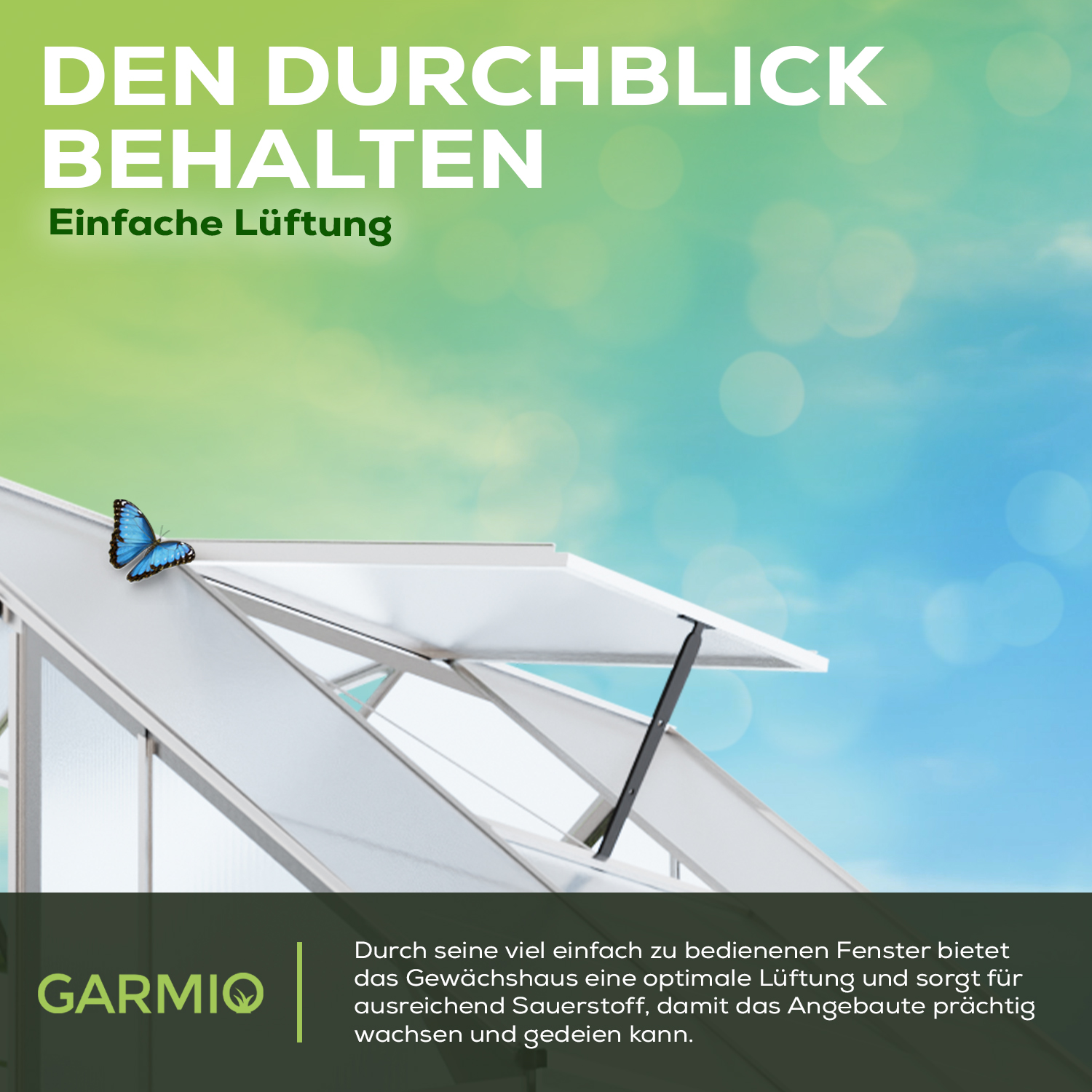 Die verbauten Dachfenster begünstigen die Luftzirkulation im Innenraum, während die Hohlkammerstegplatten Sonnenlicht willkommenheißen. Zudem sind die Stegplatten winterfest, als auch Temperatur und UV- beständig.