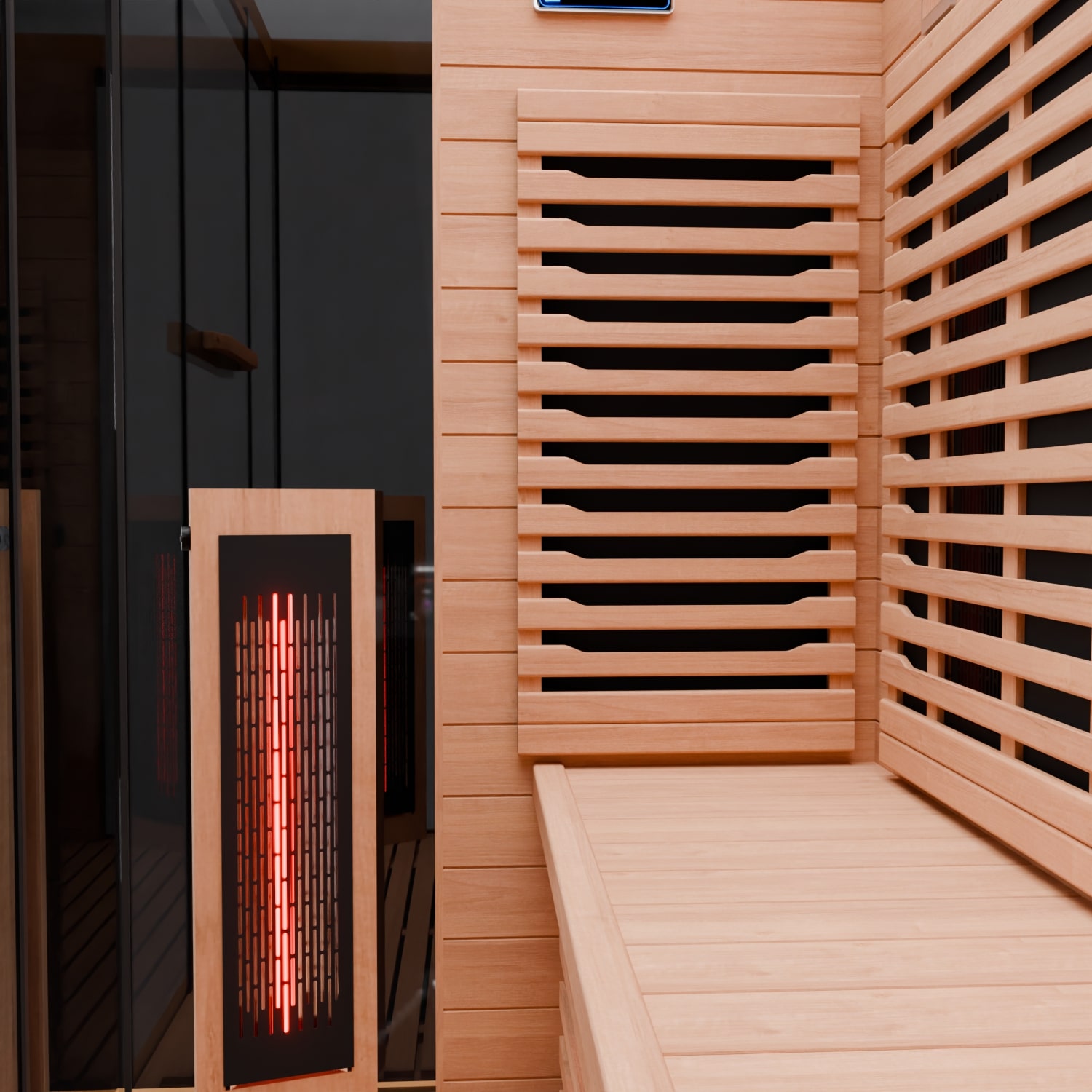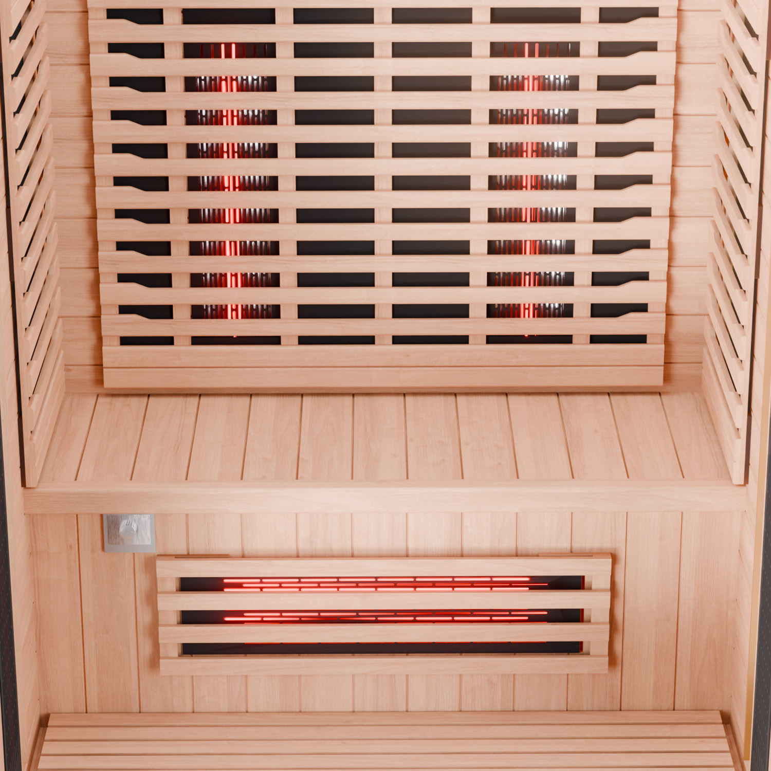 Die intuitive Steuerung ermöglicht es Ihnen, die Temperatur und Dauer der Sitzung mühelos an Ihre Bedürfnisse anzupassen. Dank der hochwertigen Vollspektrum- und Karbonstrahler wird die Wärme gleichmäßig verteilt und ist sofort nach dem Einschalten spürbar, sodass keine Aufheizzeit erforderlich ist.
