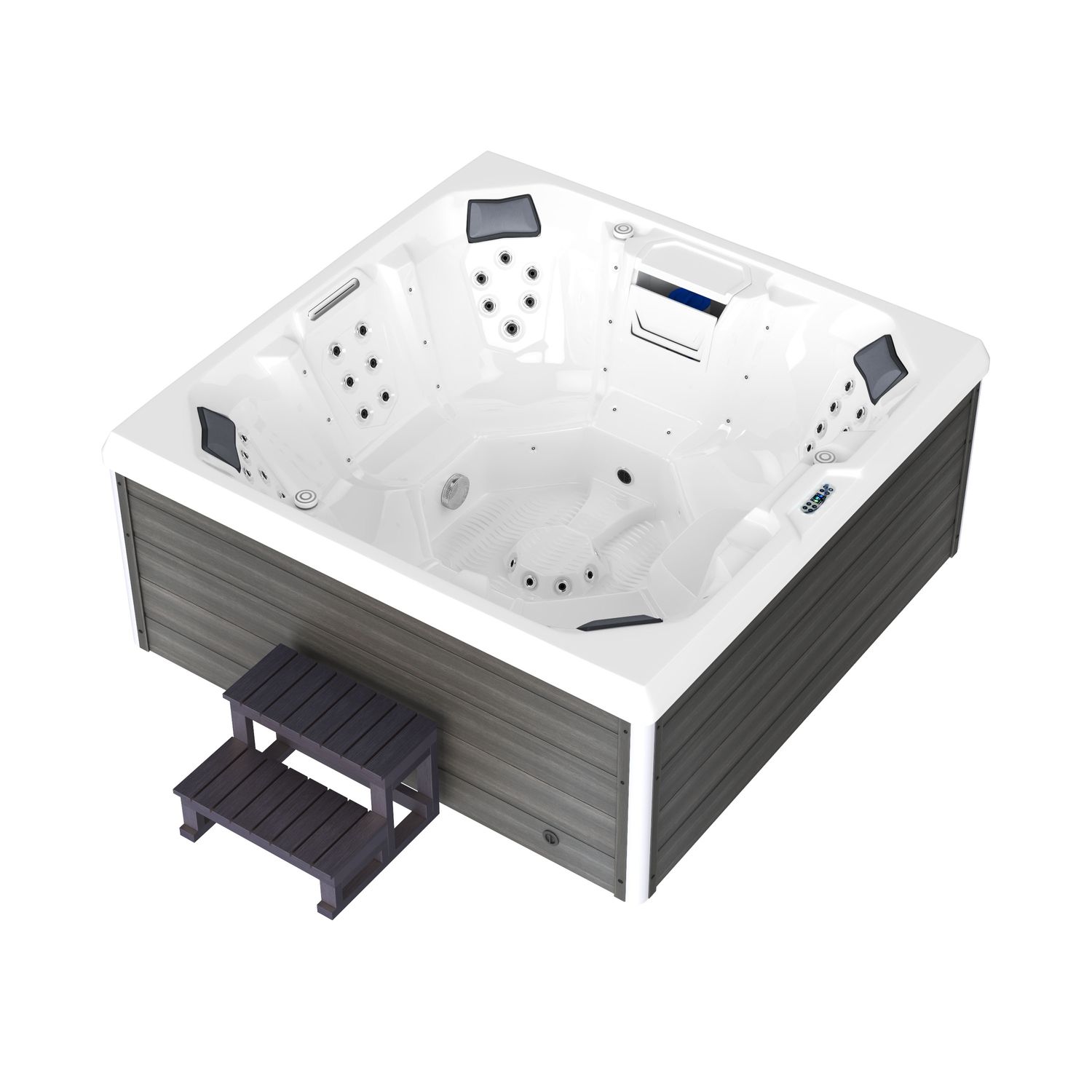 Die Whirlpools sind aus hochwertigen, langlebigen Materialien wie verstärktem Acryl und wetterfestem Kunststoff gefertigt – robust genug für den ganzjährigen Einsatz im Freien. Das moderne Filtersystem sorgt für kristallklares Wasser und reduziert gleichzeitig den Pflegeaufwand auf ein Minimum.