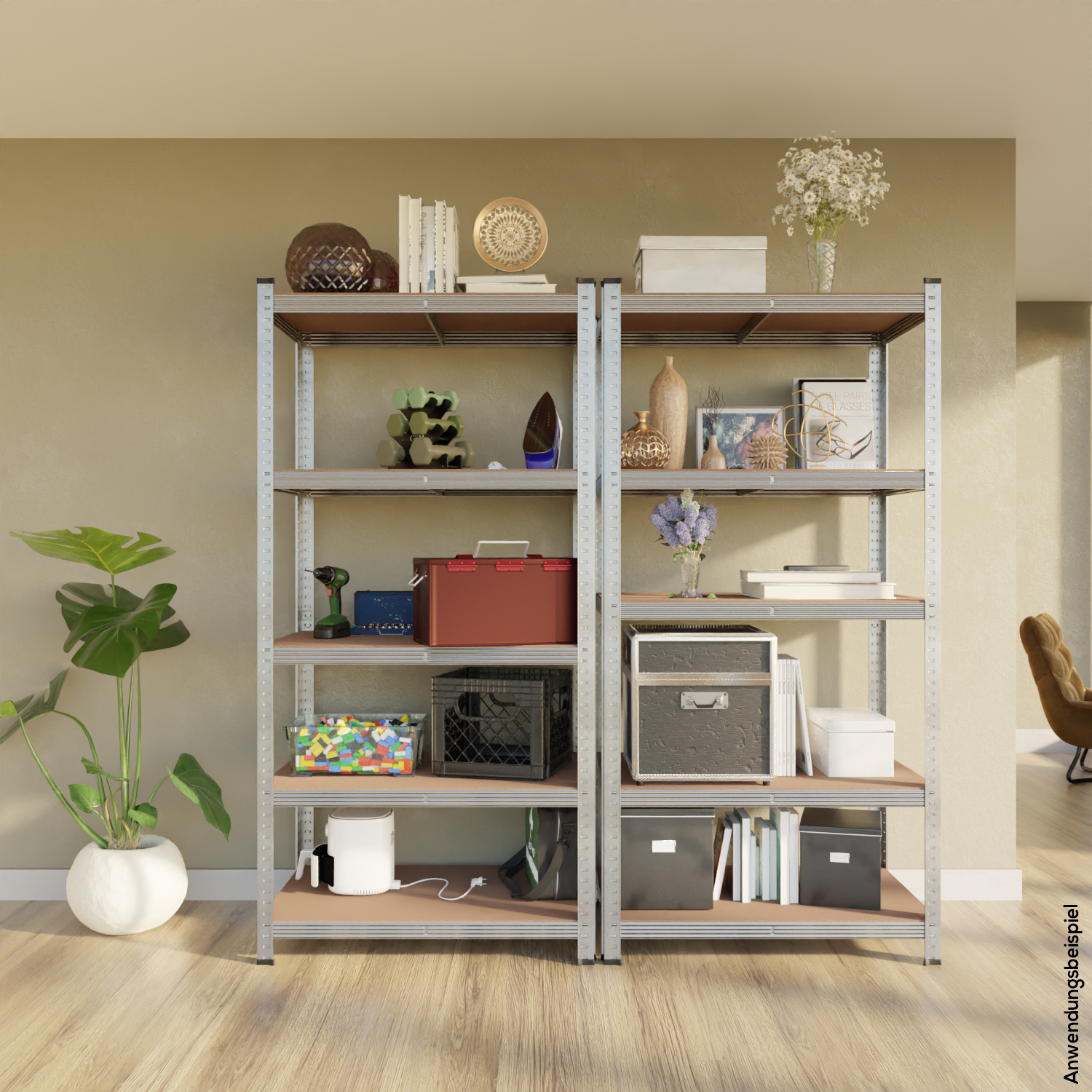 - Das robuste Steckregal bietet Platz für unterschiedlichste Materialien und eignet sich für Keller, Werkstatt oder Abstellraum.