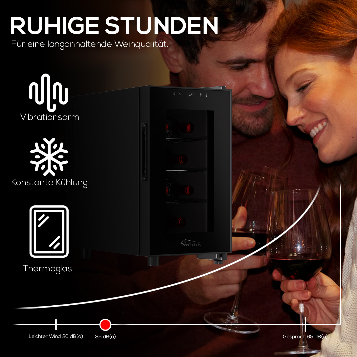 Die doppelte Verglasung bewahrt Ihre edlen Tropfen vor schädlichem Lichteinfall, während die vibrationsarme Lagerung dafür sorgt, dass die feinen Aromen des Weins ungestört reifen können. Zusätzlich garantiert die moderne Luftzirkulation im Inneren eine konstante Feuchtigkeit, wodurch Ihre Weinkorken geschützt bleiben und ein Austrocknen vermieden wird. (Thermoelektrische Kühlung)